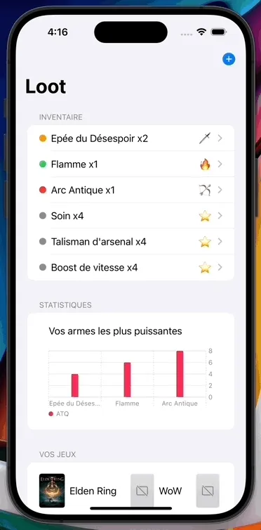 Nous allons développer une application très simple qui permet de gérer une liste des loot de jeux vidéos. Notre application aura une interface simple que vous pourrez personnaliser et améliorer une fois la base terminée.