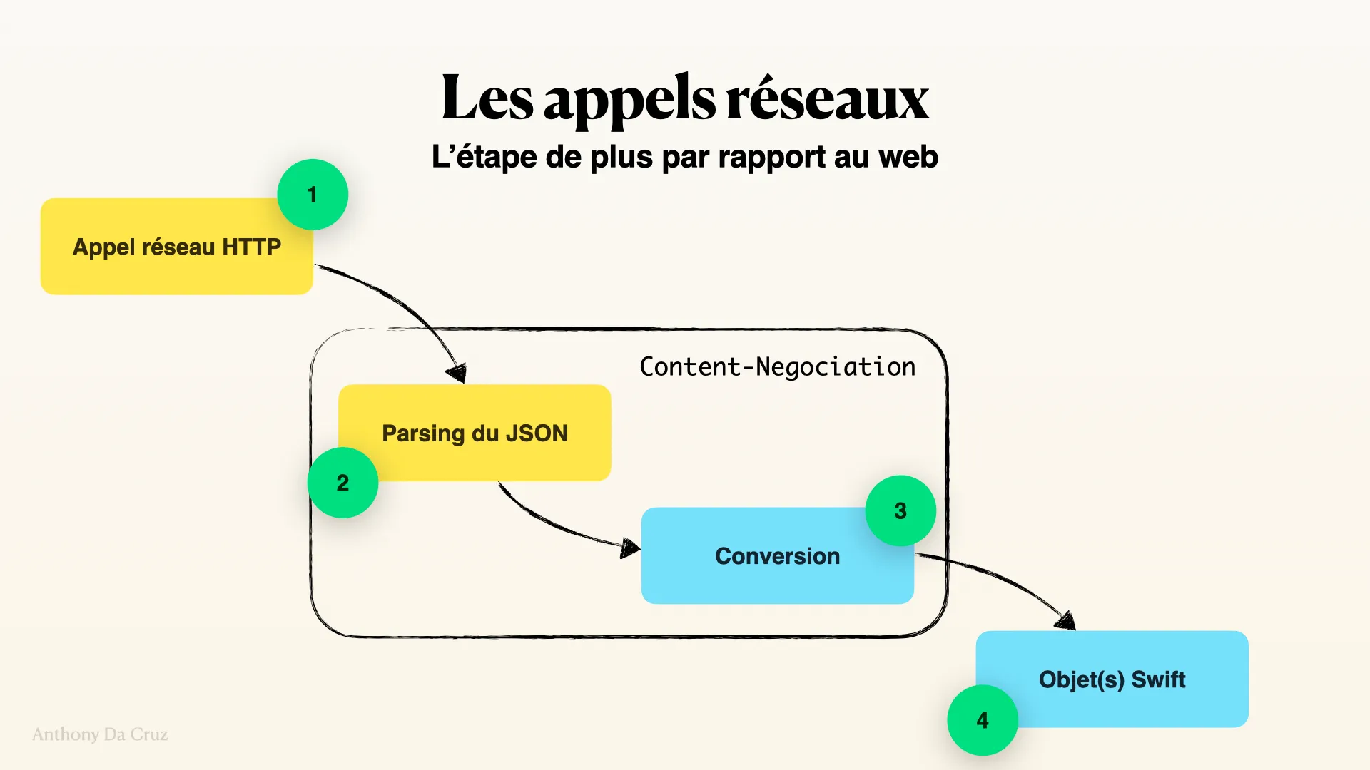 Sauf que nous sommes en Swift, et que nous avons besoin de transformer ce JSON en objet Swift pour pouvoir l’utiliser dans notre application. On appel ces opérations de la négociation de contenu, car on négocie le format de données avec le serveur.
